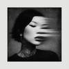 Dit portret draait om contrast en beweging. De vervaagde lijnen over het gezicht geven het beeld een rauwe en mysterieuze uitstraling. Het zwart wit versterkt de focus op vorm, expressie en textuur.