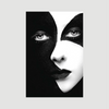 Dit dibond schilderij toont een gezicht dat wordt opgesplitst in zwart en wit. De blik is direct en intens, met een harde scheiding door het midden. Het contrast legt de focus op ogen en vorm en maakt het beeld krachtig en confronterend.