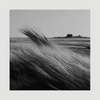 Dit dibond schilderij laat een open landschap zien met gras dat buigt in de wind. De beweging is duidelijk zichtbaar en loopt diagonaal door het beeld. In de verte staat een eenzaam gebouw, klein maar aanwezig. Het zwart wit versterkt de richting en het gevoel van ruimte.
