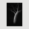 Dit dibond schilderij toont een boomstam en takken die scherp afsteken tegen een diepe zwarte achtergrond. De structuur van de bast is duidelijk zichtbaar en geeft het beeld een ruwe, bijna tastbare uitstraling. Het licht valt gericht op de stam en legt elke lijn en scheur vast.
